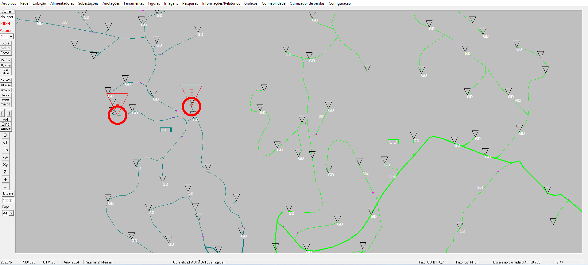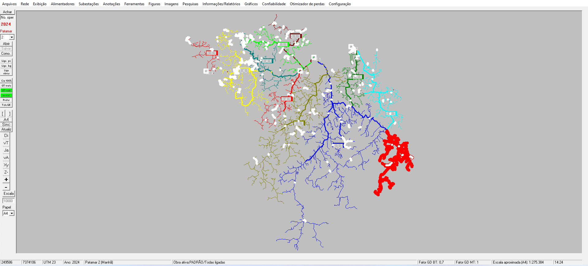 Trabalhe com redes grandes, com várias subestações e alimentadores, em vários níveis de tensão. E tem muito mais, incluindo diversas ferramentas e muitas opções de pesquisas na rede e relatórios