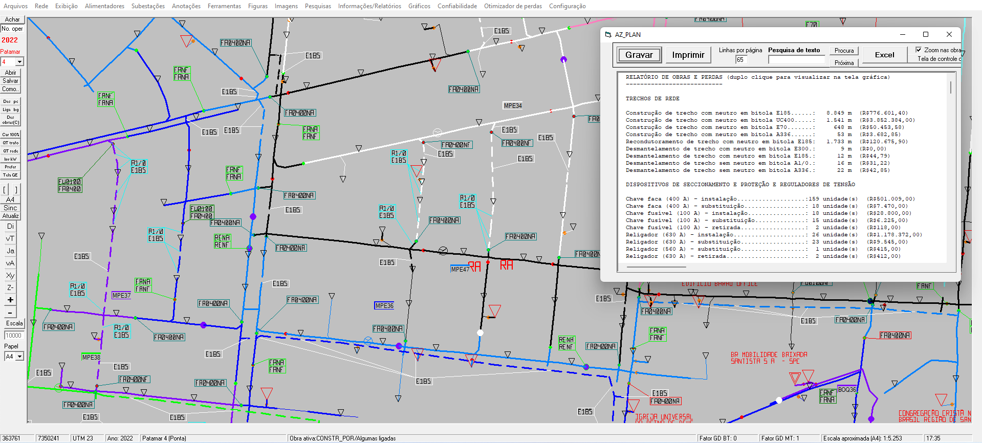 Faça estudos de rede, com inclusões, exclusões, manobras, etc. e obtenha um relatório INTERATIVO das obras, com custos estimados.